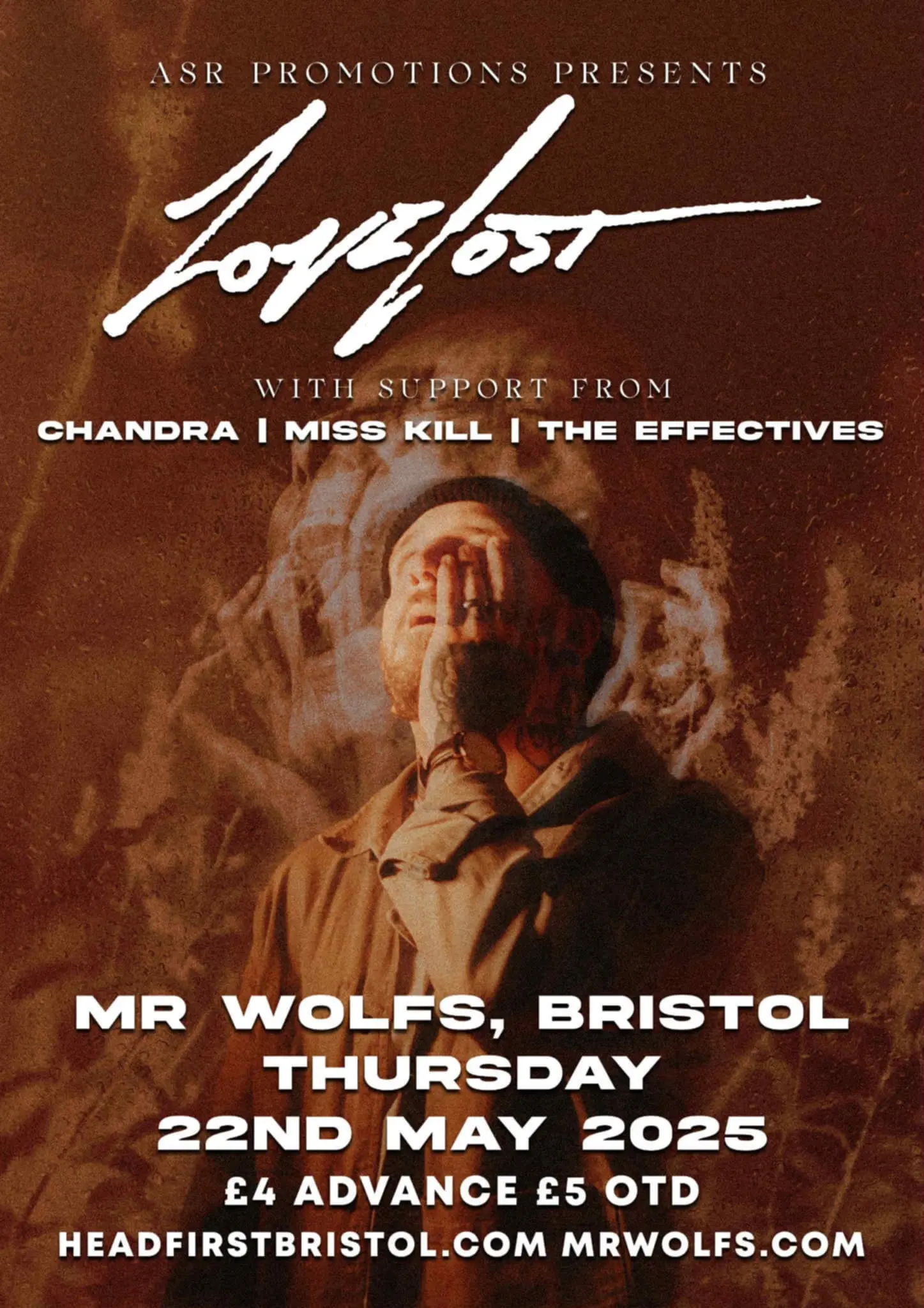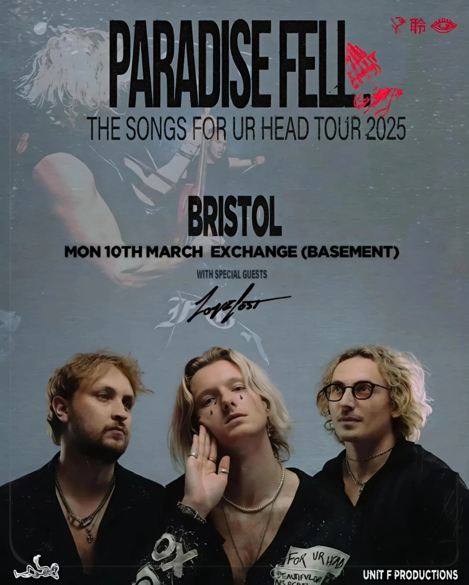 Collapse EP – CD £15.00 Lovelost – Corduroy hat £25.00 Lovelost – Hoodie £40.00 Lovelost – Cupid T-Shirt £20.00 Lovelost – Ribbed knit beanie £20.00 Upcoming shows Past shows Upcoming shows Subscribe to hear about any upcoming shows Please enter a valid email address. I agree to receive email updates from Lovelost and understand my data will be processed according to the Privacy Policy. Please check the required field. Subscribe! Something went wrong. Please check your entries and try again. Past shows Rock Against Cancer 2025 October 17, 2025 6:00 pm The King Arthur Glastonbury Find out more The Damned & The Dead Tour October 15, 2025 7:00 pm Thekla Find out more Lovelost May 22, 2025 7:00 pm Mr Wolfs, Bristol Find out more Paradise Fell The songs for Ur head tour 2025 March 10, 2025 7:00 pm Exchange Bristol Find out more See all events